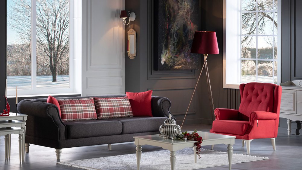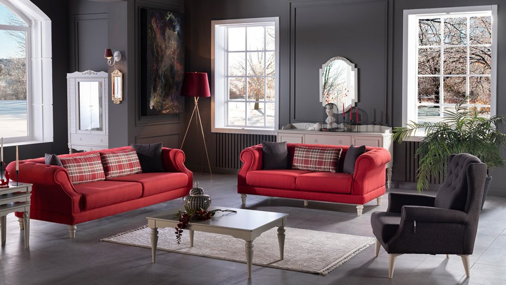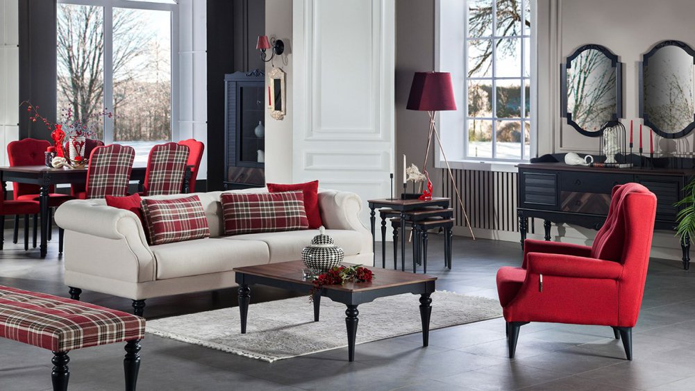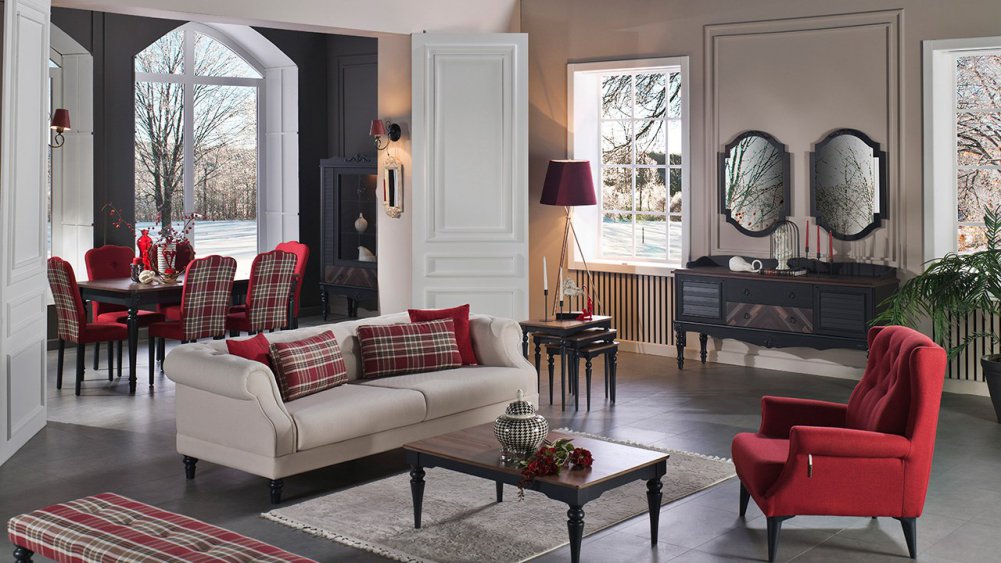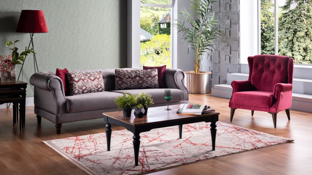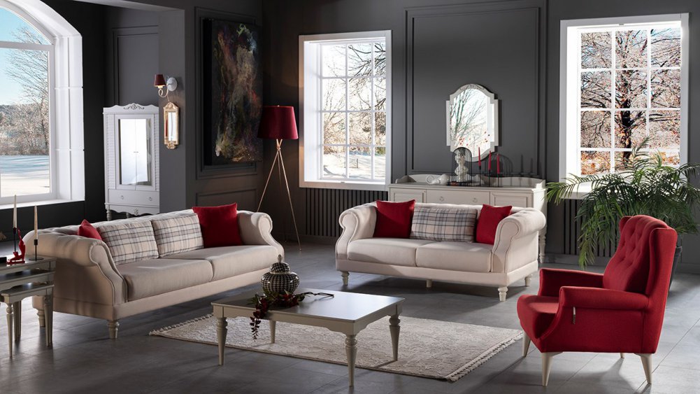 Pery Koltuk Takımı Laupery Krem Bordo – Pery Orta ve Zigon Sehpa
