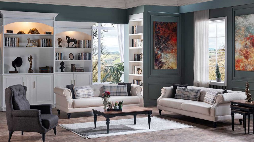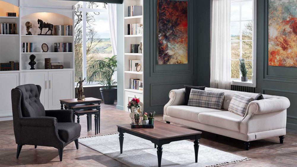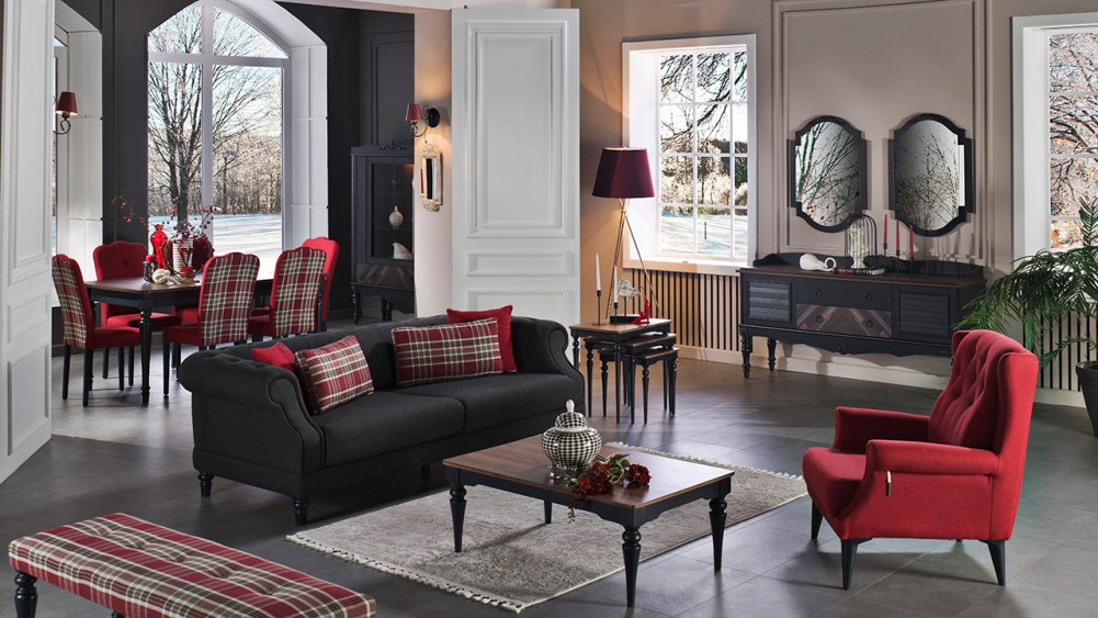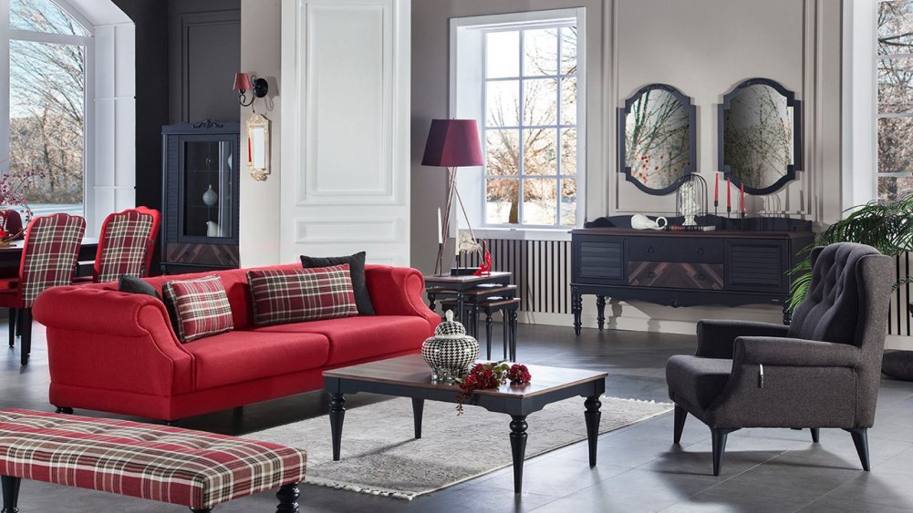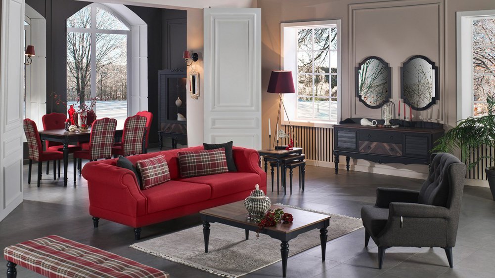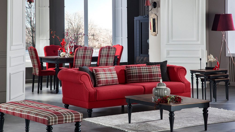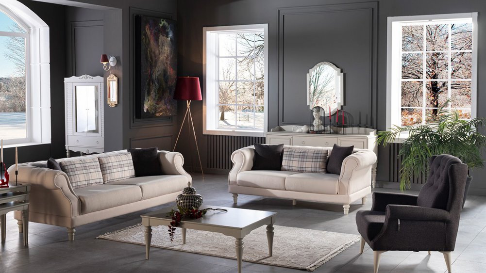 Pery Koltuk Takımı Laupery Krem Bordo – Pery Orta ve Zigon Sehpa