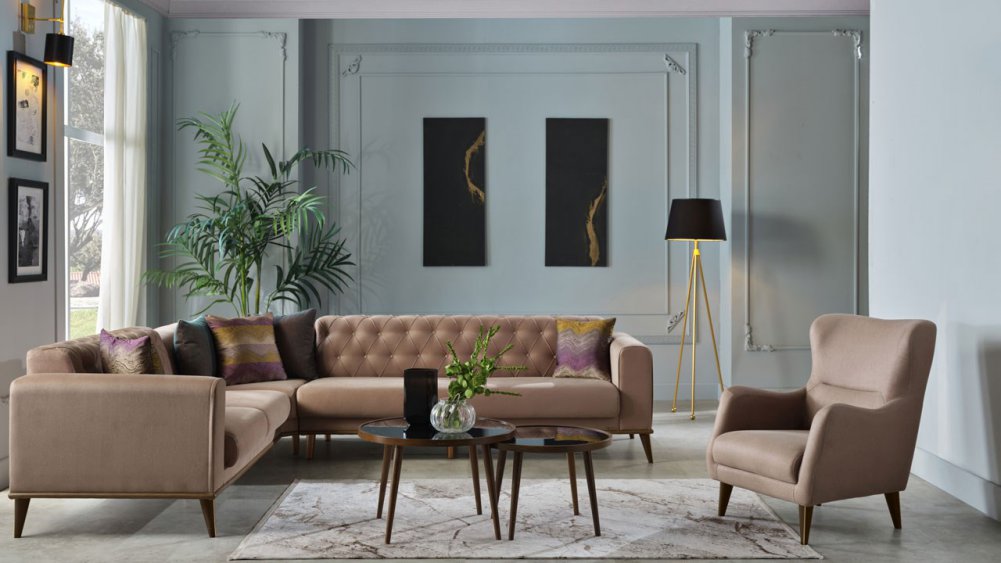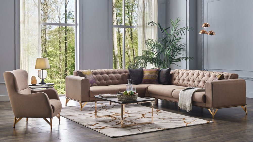 Güncel tarzda kumaş uygulamaları ile Diego Köşe Takımı modern bir havaya sahiptir