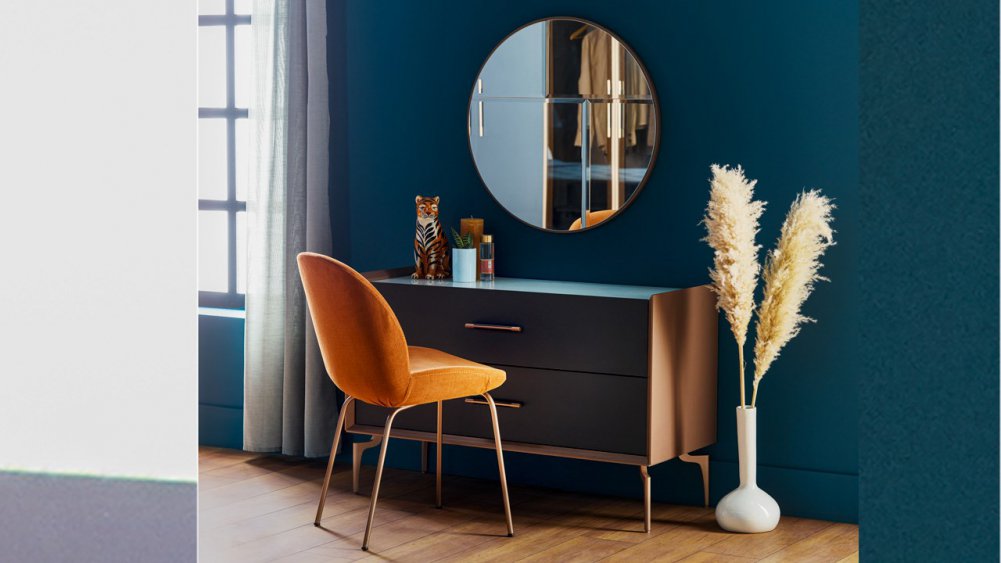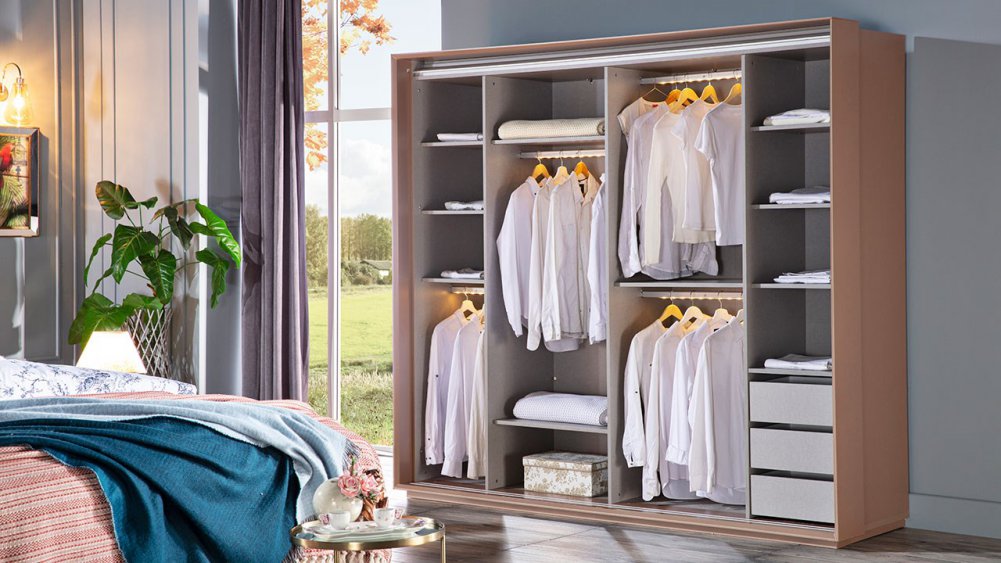 6 Kapaklı Dolap iç kısmında yer alan flok uygulamalı makyaj bölmesi ile fonksiyonellik arttırılmıştır.