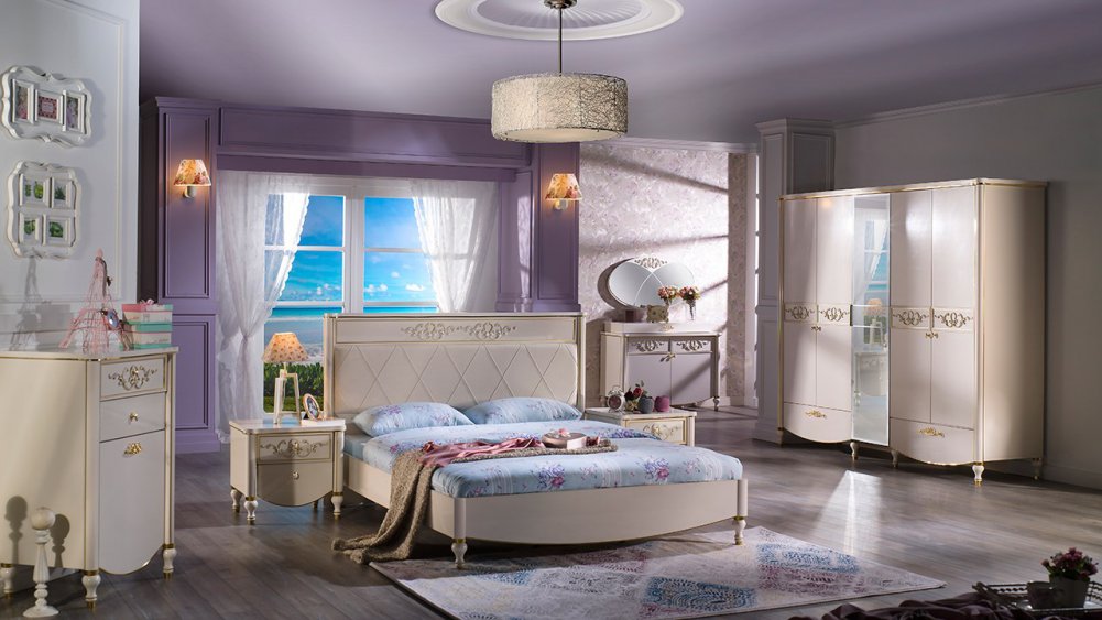 Rustik Yatak Odası Takımı altın sarısı ile kombine edilerek görsel açıdan zenginleştirilmiştir.