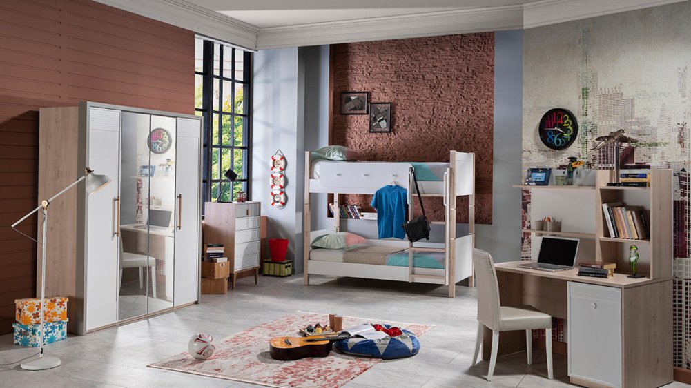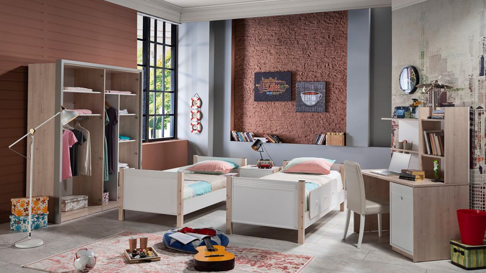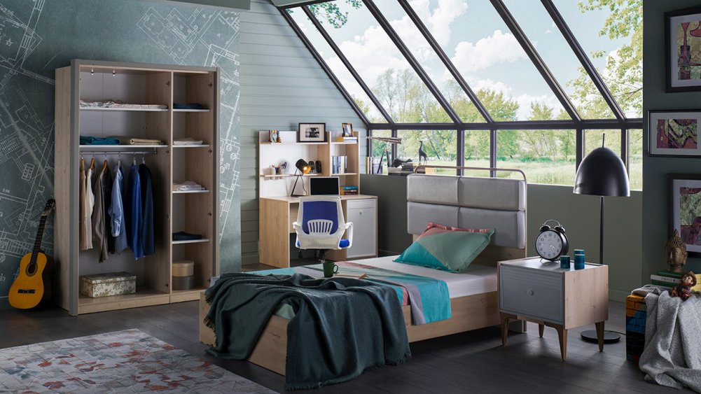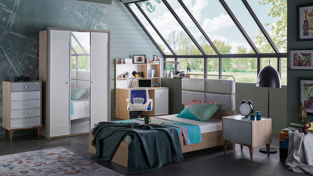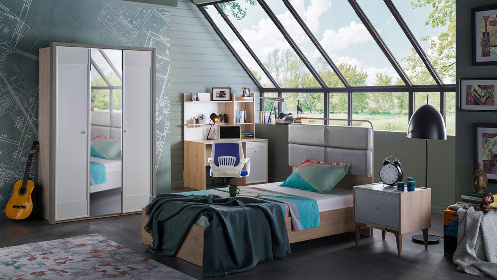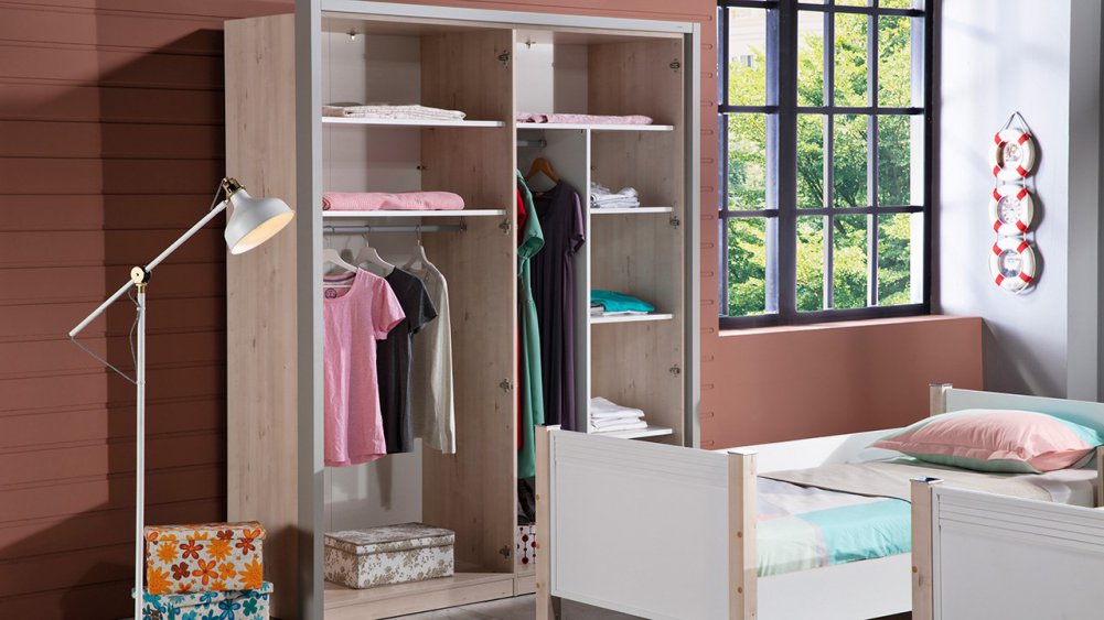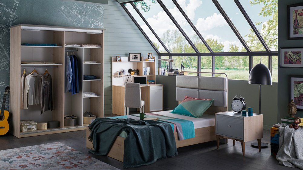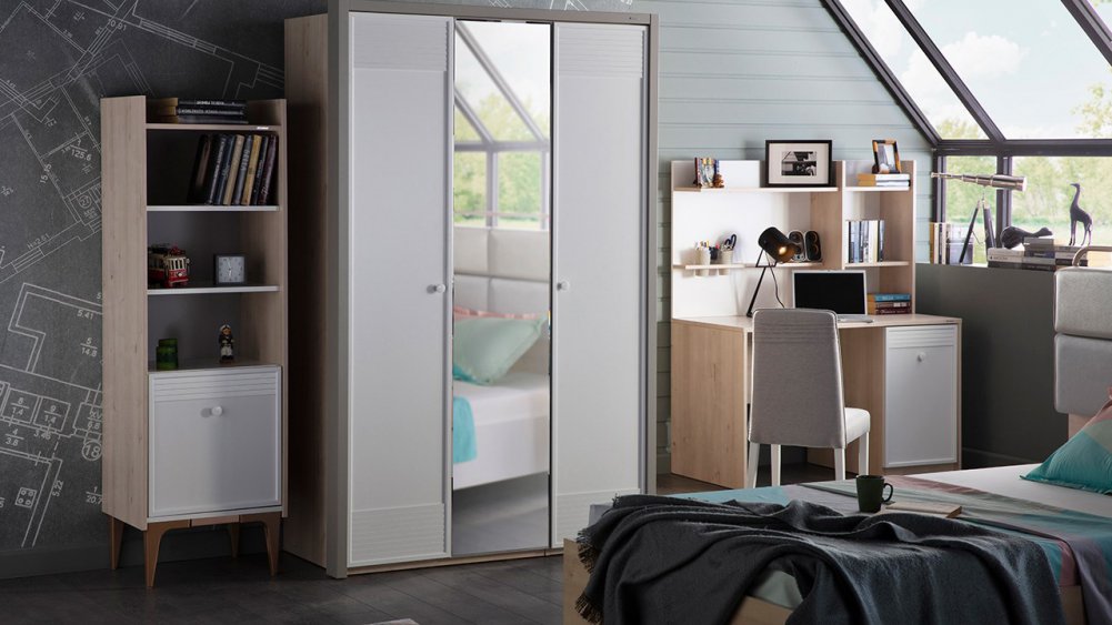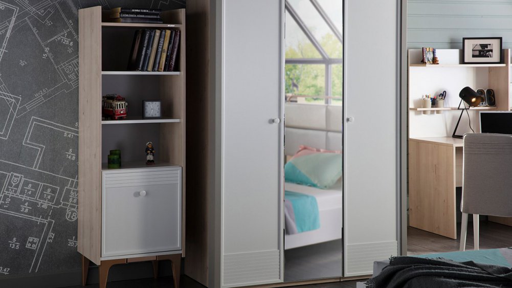Üç kapaklı ve Sürgü kapaklı kapaklı olmak üzere iki gardırop alternatifi ile sunulmuştur.