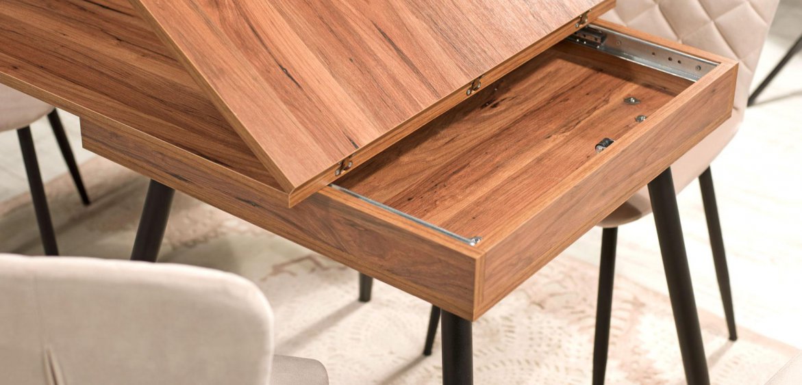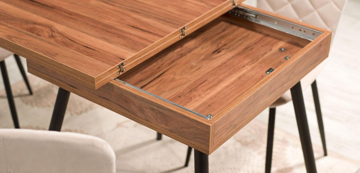 Yeri dar olan mekânları düşünerek katlanır özelliği ile sunulan Elit Mutfak Masası, yemek alanlarına endüstriyel bir hava katıyor. Şık kapitone sandalyeler ile kombinlenebilen, hafif nemli bezle kolayca temizlenen masa, farklı renk seçeneklerine sahip.