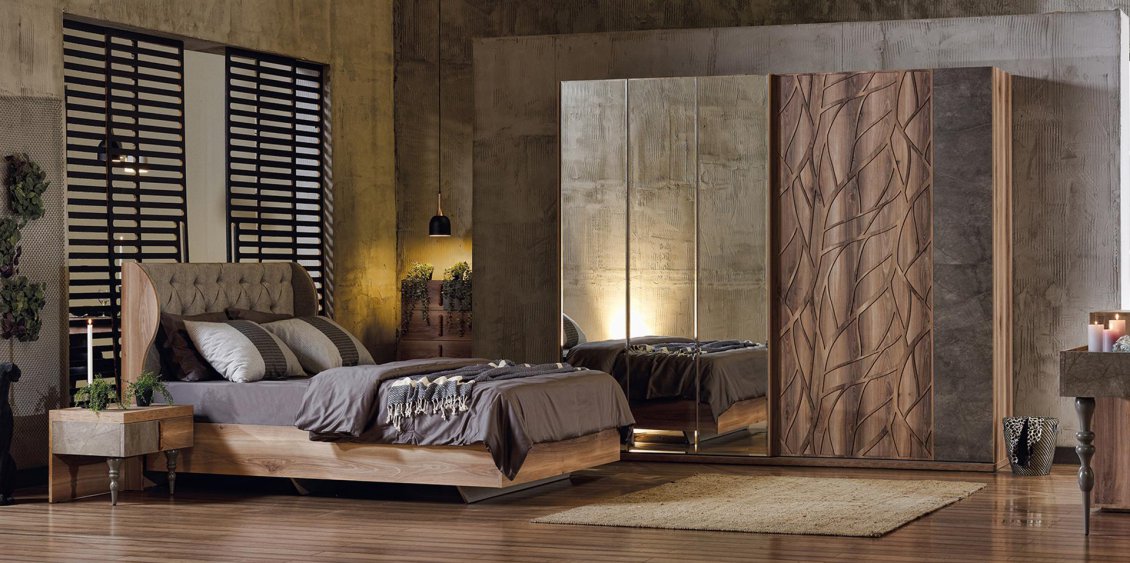 Yatak odalarındaki derin ve romantik etki; Şehzade. Şehzade Yatak Odası Takımı, kullanıcılarına gri ve açık ceviz tonlarının seçkin etkisini doyasıya hissettiriyor. Sürgü kapaklı dolap, şifonyer, şifonyer aynası, komodin, çamaşırlık ve karyola kombinasyonundan oluşan takım, güçlü tasarım anlayışının yanı sıra son derece sağlam materyaliyle de dikkat çekiyor. Şehzade Yatak Odası Takımı, 2 kapılı sürgülü dolabındaki geniş saklama alanlarıyla fonksiyonelliğe vurgu yaparken bronz görünümlü kulpları ve ayna çerçevesiyle klasik bir çizgiyi de sahipleniyor. Takımın kapitone işçilikle detaylandırılan karyola başlığı, kıvrımlı hatlarıyla modernize bir görsellik oluşturuyor. Karyola aynı zamanda derin bölmelere sahip olan bazasıyla da kullanıcıların depolama sorununu da ortadan kaldırıyor.
